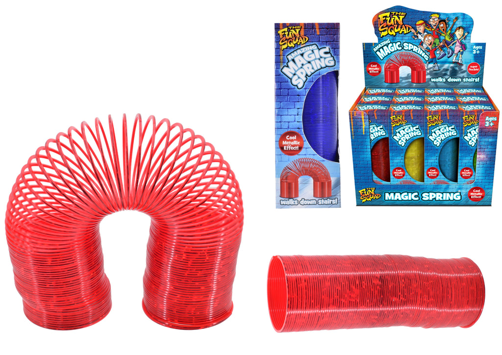 Amazing walking spring is super flexible & can even walk down stairs! It has a super cool metallic effect and comes in assorted colours.