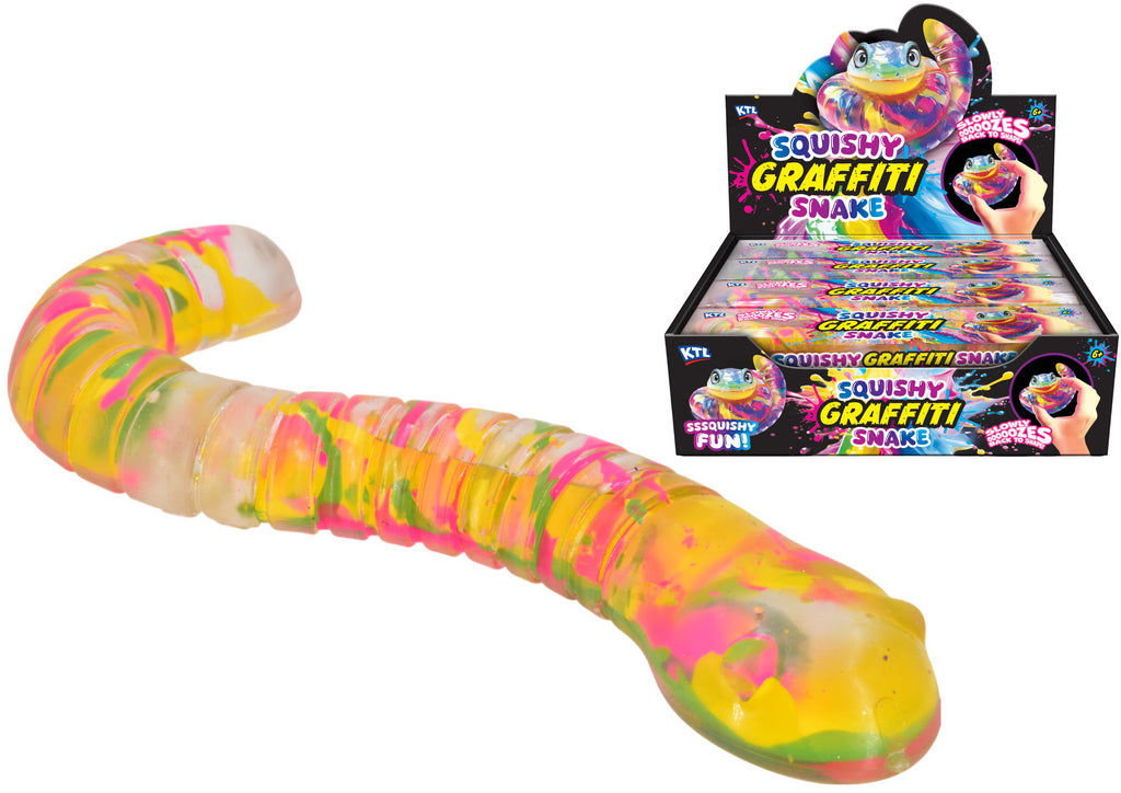 Squishy Graffiti Snake is a tactile fidget toy designed for stress relief and sensory play. Its flexible, squeezable body features vibrant graffiti-style patterns that make it visually engaging. Perfect for keeping hands occupied during work, study, or downtime. Ideal for all ages seeking a simple, portable way to ease tension and stay focused.