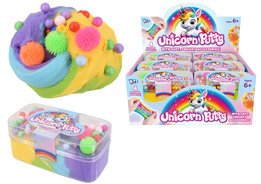 Unicorn Putty is a moldable, stretchable compound infused with magical sparkle and whimsical embellishments. Mix, knead, and shape the putty whilst discovering embedded add-ins that enhance tactile play.