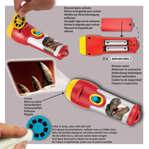 The torch comes with three slide discs with 24 colour photographs. Swap and change the slides easily by inserting the chosen disc then rotate the disc round to view the fantastic colour images which project up to one meter wide. Images are easily focused by turning the lens head. It can also be used as a normal torch without the slides in place and is great for keeping on bedside tables to give comfort to children during the night. The torch measures 12cm long and 4cm in diameter.