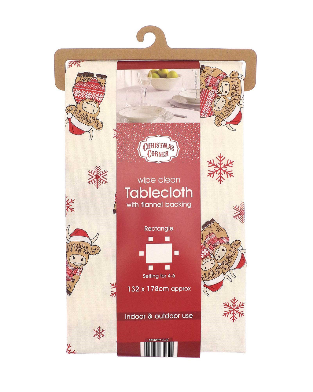 Add festive flair to your dinner table with this Christmas Wipe Clean Tablecloth. Featuring an adorable holiday-inspired design, this tablecloth makes a great choice for elevating your table setting. Ideal for protecting surfaces against spills and stains, it helps add functionality and style to your space. Moreover, the easy-to-wipe surface removes the hassle of after-party clean-ups.