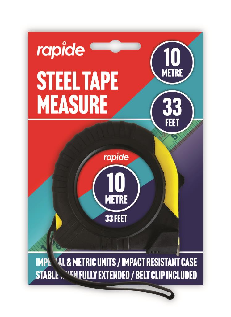 Imperial and metric units. Impact resistant case. Stable when fully extended. Belt clip included.