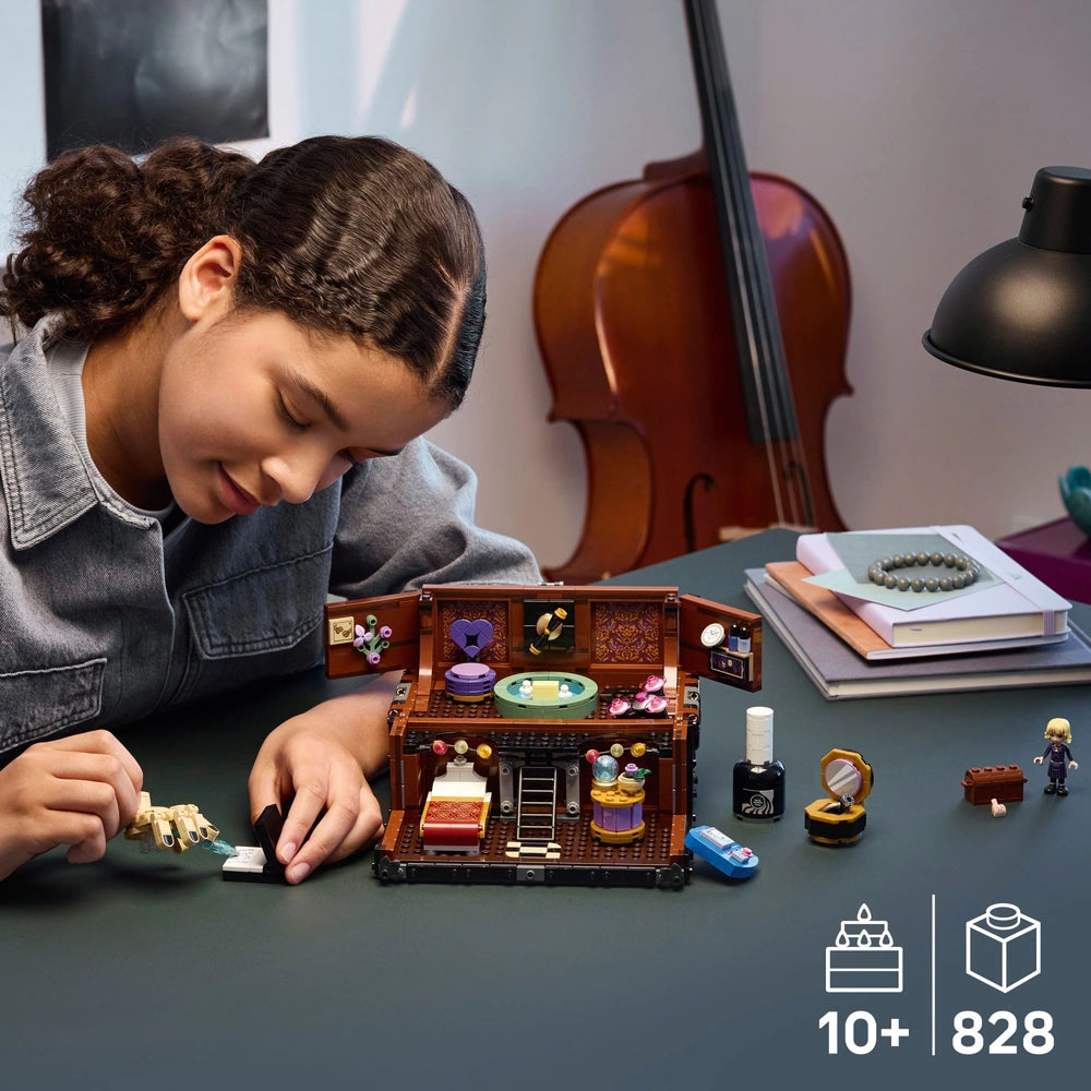 This creative play-or-display model is designed to fulfil a passion for mystery and adventure play or be used as a unique room decor display set on a desk or shelf. It features an opening trunk that includes a bed, chair, hat and watch, space in the trunk top to hold stickers, nail varnish and hand cream, and more. Plus, a posable Thing figure and an Enid mini-doll figure.