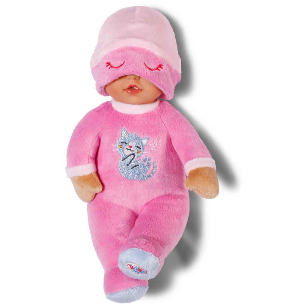 Peek-a-boo! BABY born for babies Sleepy Pink is the cutest little friend for babies. Her adorable hat can be pulled over her eyes at snooze time or used for a game of peek-a-boo. Her super-soft body and snuggly rose romper with crocodile design makes her perfect for cuddles all night long. Plus, if you give her a little shake, you’ll hear the integrated rattle which is perfect for those first moments of discovery. In case of any spills or dribbles, Baby born for babies Sleepy Pink can be handwashed. The perfect first gift for babies! 30cm soft body doll.