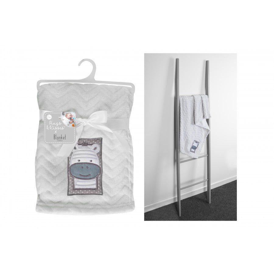 This baby blanket is an essential item for any baby, made from soft flannel with embossed zigzag and embroidered zebra design, ideal for keeping baby snuggly and warm.