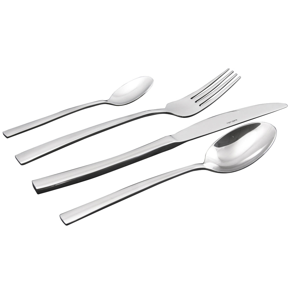 Striking and contemporary the Mayfair twenty four piece cutlery set is made of stainless steel and features six place settings. The squared-off handles add to its clean aesthetics, but also create a firm, comfortable grip. This set comes in a box and can be lovely gift idea for housewarming, or perfect to add a finishing touch for your own table settings.