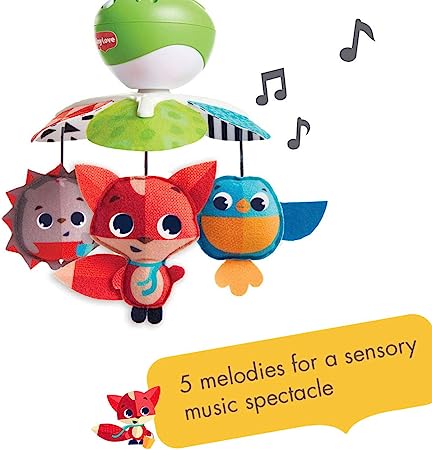 Take-Along Mobile is a mobile that easily comes along any trip. The mobile plays up to 30 minutes of non-repetitive melodies (5 different tunes) and has adorable characters that visually stimulate baby, giving a sense of familiarity. Its universal clip ensures easy attachment on crib, activity mat, carrier, stroller, bassinet and more. The take-along mobile promotes baby's development and stimulates the following developmental wonders: emotional intelligence, senses and language and communication. Take-along Mobile is part of the Meadow Days collection, introducing your baby to the colourful meadows.