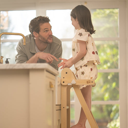 Introducing the TP Active-Tots Wooden Folding Toddler Kitchen Helper Tower, the latest addition to our nursery range. This toddler learning tower is the perfect tool for your little kitchen helpers, this beautifully crafted wooden tower allows your children to learn & develop through growing their routine & getting involved. Whether it's helping out in the kitchen or being able to climb up to brush their own teeth, this fold away in seconds learning tower will allow them to spend years developing in a fun, educational way.