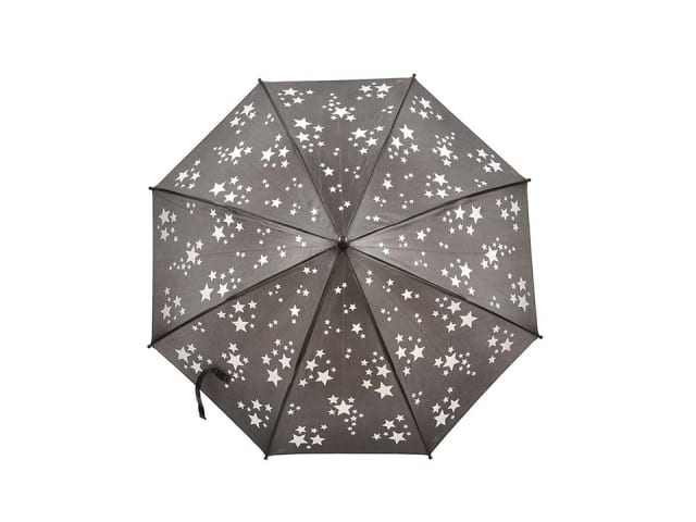 Brighten up a rainy day with this childs umbrella. The black design is covered in reflecting stars making them easier to see on a dark, wet day.