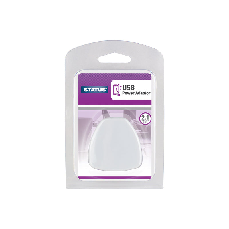USB Charging Port Power Adaptor - White Plug - 2100mA