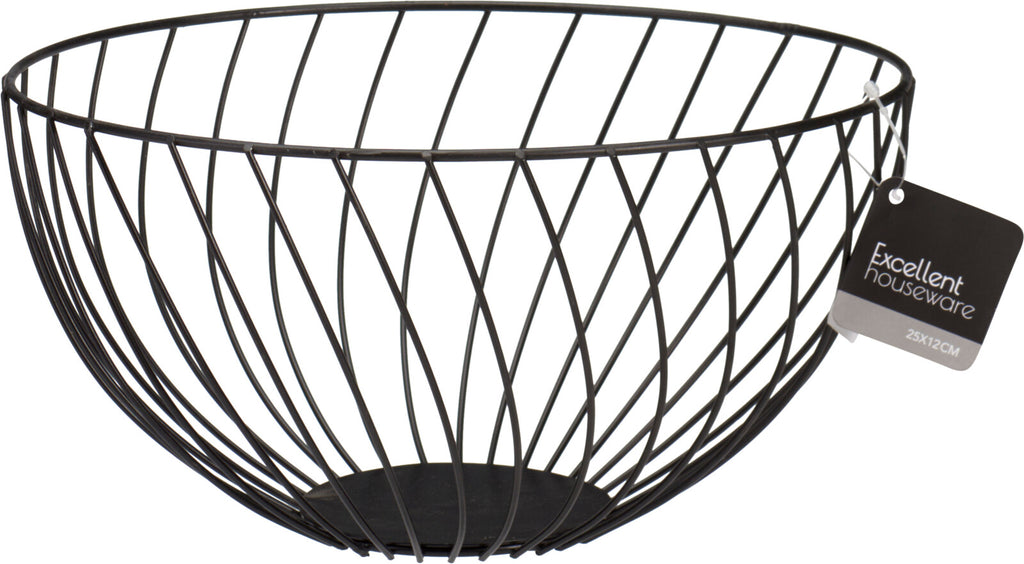 Enhance your kitchen with our sleek Wire Fruit Basket Black. Made of durable carbon steel, this beautiful basket boasts a modern matte finish in classic black. With a top diameter of 250mm and a height of 120mm, it can hold a variety of fruits, keeping them organized and within reach.