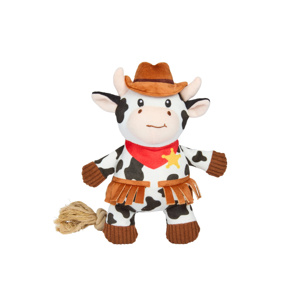 • Plush wild-west themed dog toy with rope tail, great for chewers and chompers!